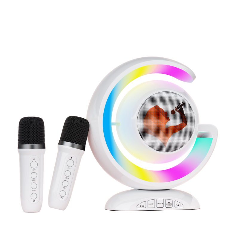 Transforme qualquer lugar em uma festa com o Alto-Falante Bluetooth Portátil YS-110. Equipado com karaokê, iluminação LED e dois microfones, este alto-falante é a escolha ideal para quem adora cantar e curtir boa música.