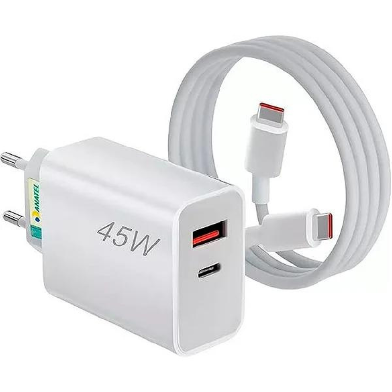 Potência de Saída de 45W: Com uma potência de saída de 45W, este carregador oferece carregamento rápido e eficiente para dispositivos que suportam essa potência, incluindo laptops, tablets e smartphones.