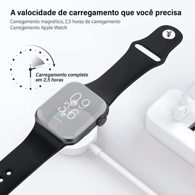Com um design compacto e elegante, o Peining WU-H577 é extremamente portátil, tornando-se a escolha ideal para quem está sempre em movimento. Seja em casa, no escritório ou durante suas viagens, este carregador cabe facilmente em sua bolsa ou mochila, permitindo que você mantenha seu Apple Watch carregado onde quer que esteja. O conector magnético facilita o encaixe do relógio, proporcionando uma experiência de carregamento prático.