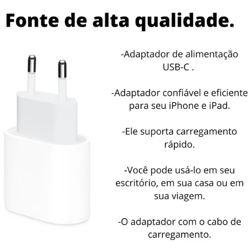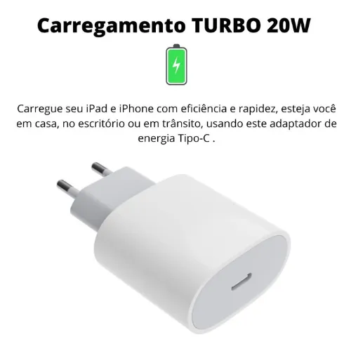 - Carregamento Rápido: Fornece 20W de potência para um carregamento rápido e eficiente.